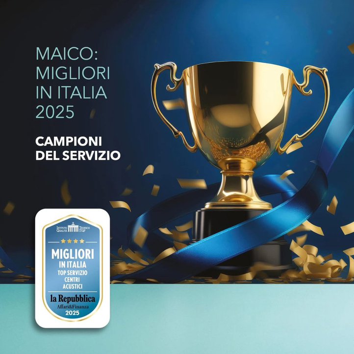 Il riconoscimento “Migliori in Italia - Campioni del Servizio 2025” non è solo un premio, ma la testimonianza di un percorso costellato da impegno, professionalità e attenzione verso il cliente. Grazie alla centralità della persona e alla costante ricerca di innovazione, Maico si conferma come leader nel settore degli apparecchi acustici, dimostrando che il successo si fonda sulla capacità di creare relazioni empatiche e durature. Questo prestigioso riconoscimento rafforza la posizione di Maico come punto di riferimento nel mercato italiano degli apparecchi acustici. La vittoria del premio “Campioni del Servizio 2025” rappresenta la prova tangibile che la filosofia di mettere la persona prima del prodotto è la carta vincente per offrire un servizio eccellente e umano.